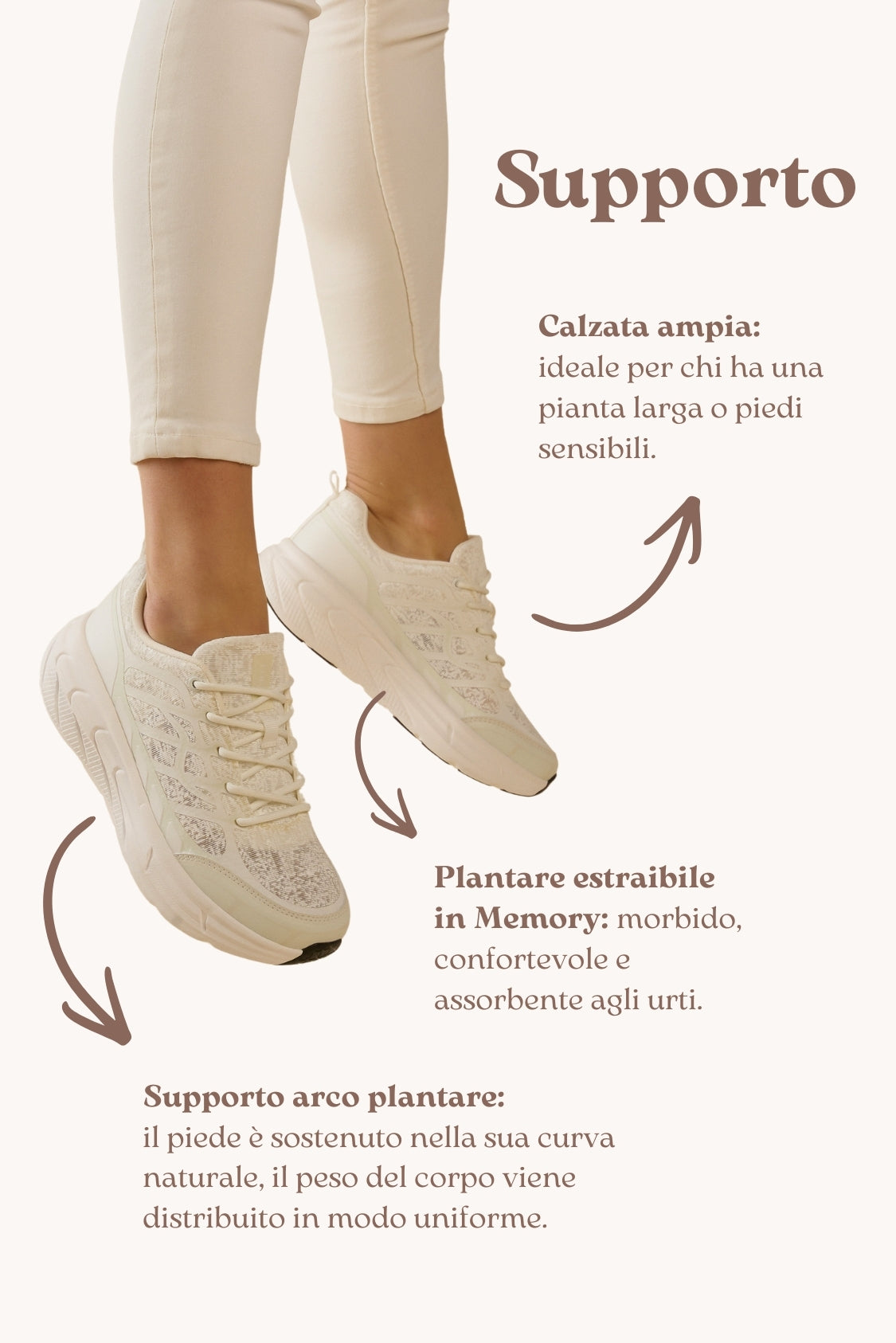 Una scarpa che grazie al plantare anatomico supporta correttamente il piede, distribuendo il peso corporeo in modo uniforme su tutta la pianta.